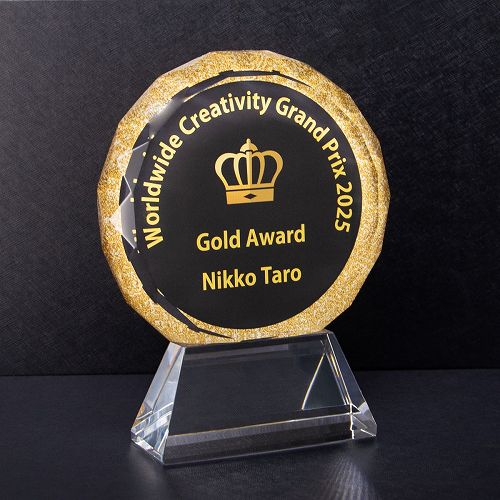 ファセット・ヘイロートロフィーは、台形台座にメダルのような多面カットを施した高級感ある表彰トロフィーです。光を受けて繊細に輝くデザインが、受賞シーンを華やかに演出。金・銀・銅の3バリエーションで賞のランクを明確に表現できます。台座部分には名入れやロゴ刻印も可能で、企業表彰や大会表彰、周年記念など幅広い用途に対応。品格と存在感を兼ね備えた特別な記念品です。