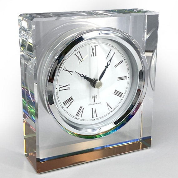 大型のクロックフェイスが採用されており、少し離れた場所からでも視認性に優れています。台座付きで安定感があり、デスク上や受付、飾り棚など多彩なシーンで美しい存在感を放ちます。電波時計ならではの正確な時間表示とデザイン性の高さから、記念品や贈答用にも高評価を得ています。