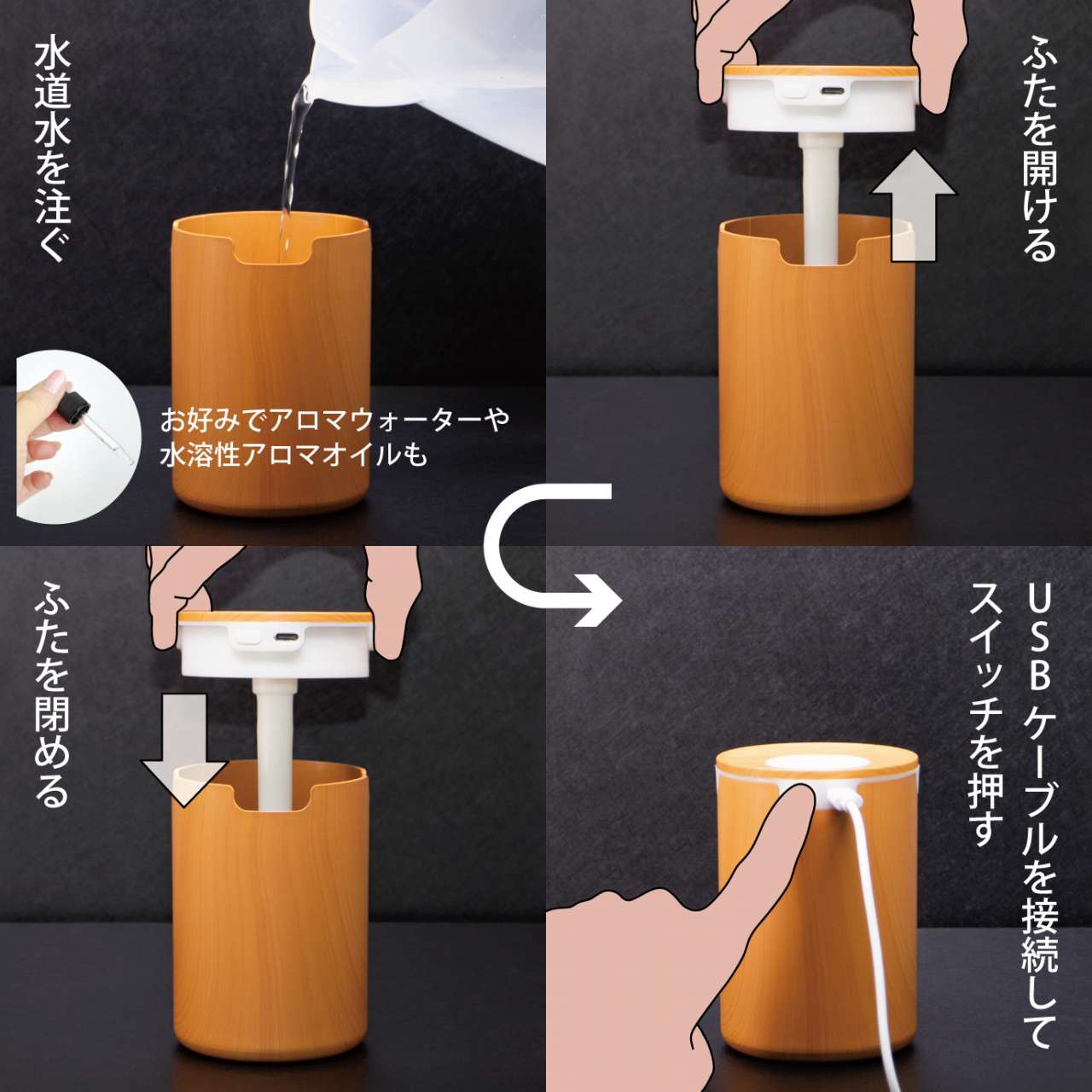 ・アロマウォーター、水溶性アロマオイル対応(※アロマオイルは使用不可)