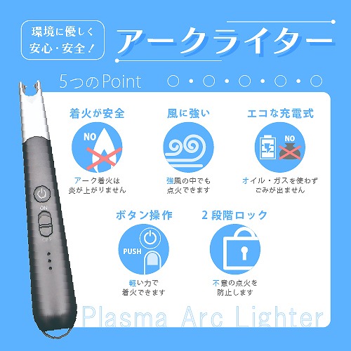本製品は、オイルやガスを一切使用せず、USB Type-Cにより手軽に充電可能なプラズマアーク式の電子ライターです。