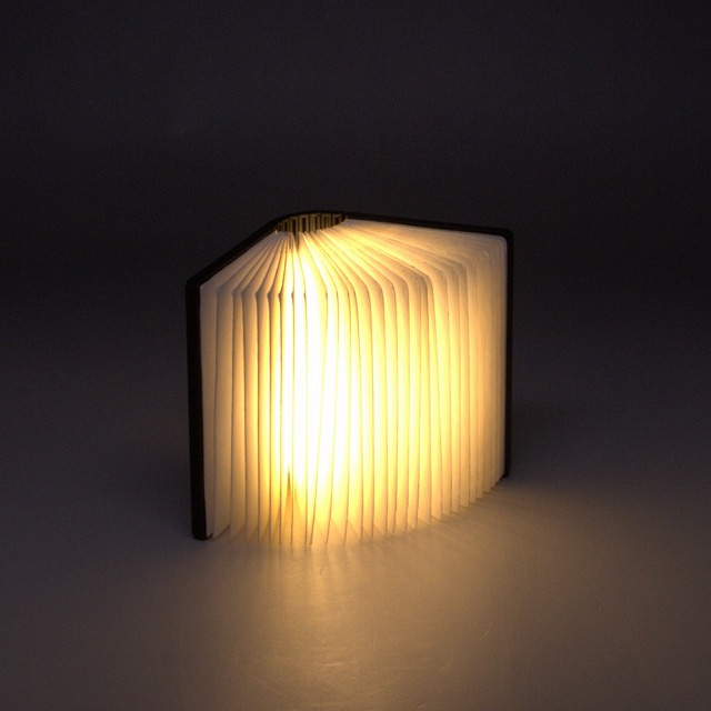 まるで本を開くように広がるページ型のライト。幻想的な光が空間をやさしく包み込みます。開くと自動で点灯し、閉じると消灯する、本型デザインのLEDランプです。