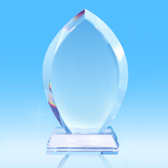 滑らかな曲面を描くオーバルカットが特徴のクリスタルシールドです。太く斜めに入った曲線カットが全体に力強さと存在感を与え、シンプルながらも目を引くデザインに仕上がっています。透明感あふれるクリスタルの美しさと相まって、洗練された印象を醸し出します。